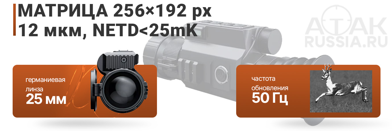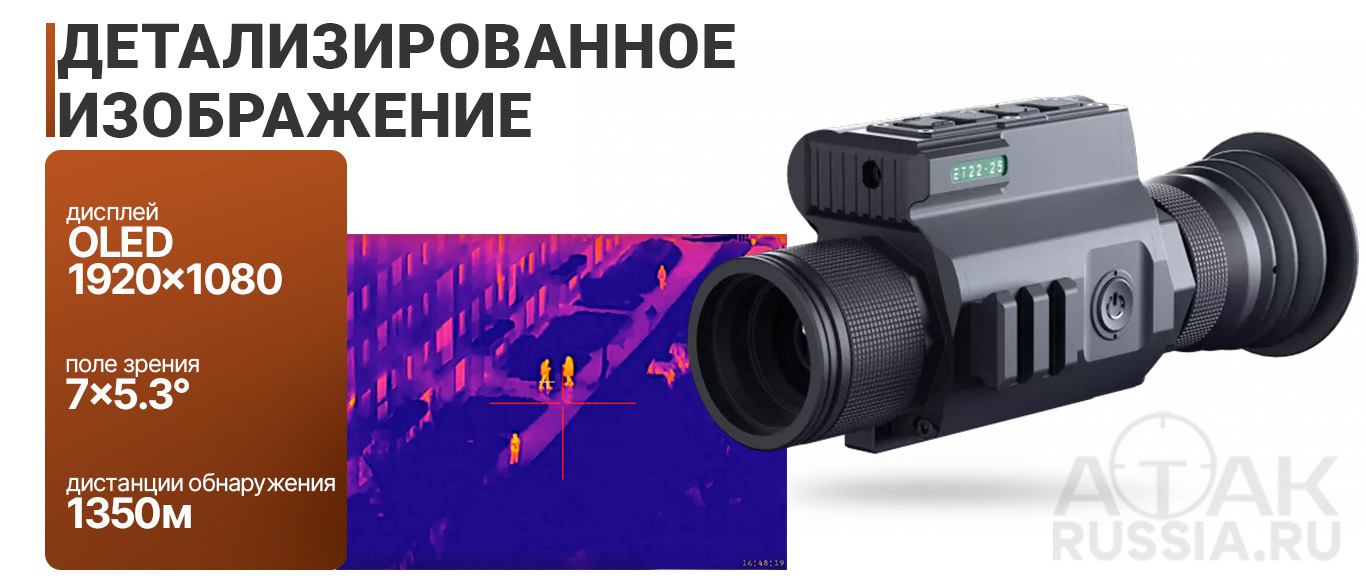 Тепловизионный прицел ATAK ET22-25 — это цифровое устройство с высокочувствительной матрицей 256x192px, эффективно обнаруживает тепловые объекты на расстоянии до 1350 м. Регистрирует тепловое излучение в диапазоне 8-14 мкм, подходит для круглосуточной охоты, наблюдений и видеосъёмки в сложных условиях видимости (дождь, туман, густая растительность). Прицел оборудован кронштейном с интерфейсом Picatinny с выносом в сторону стрелка для установки на максимально широкий спектр оружия