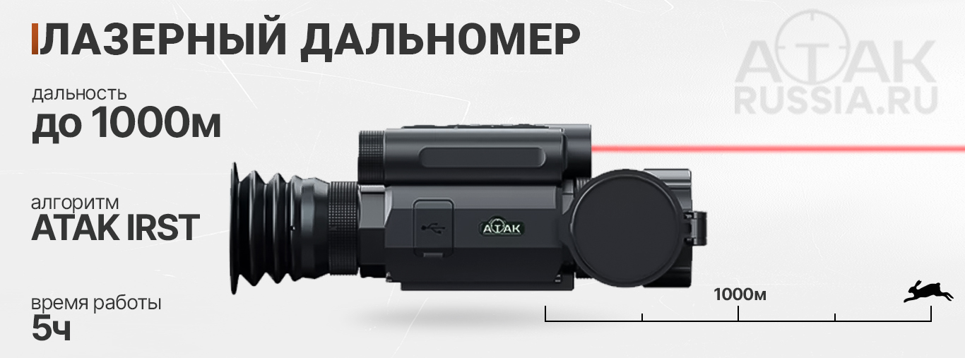 Лазерный дальномер - обеспечивает точное измерение расстояний до 1000 м. Устройство поддерживает как одиночные замеры, так и режим непрерывного сканирования. Инфракрасный лазерный луч остается незаметным для невооруженного глаза и приборов ночного видения.
