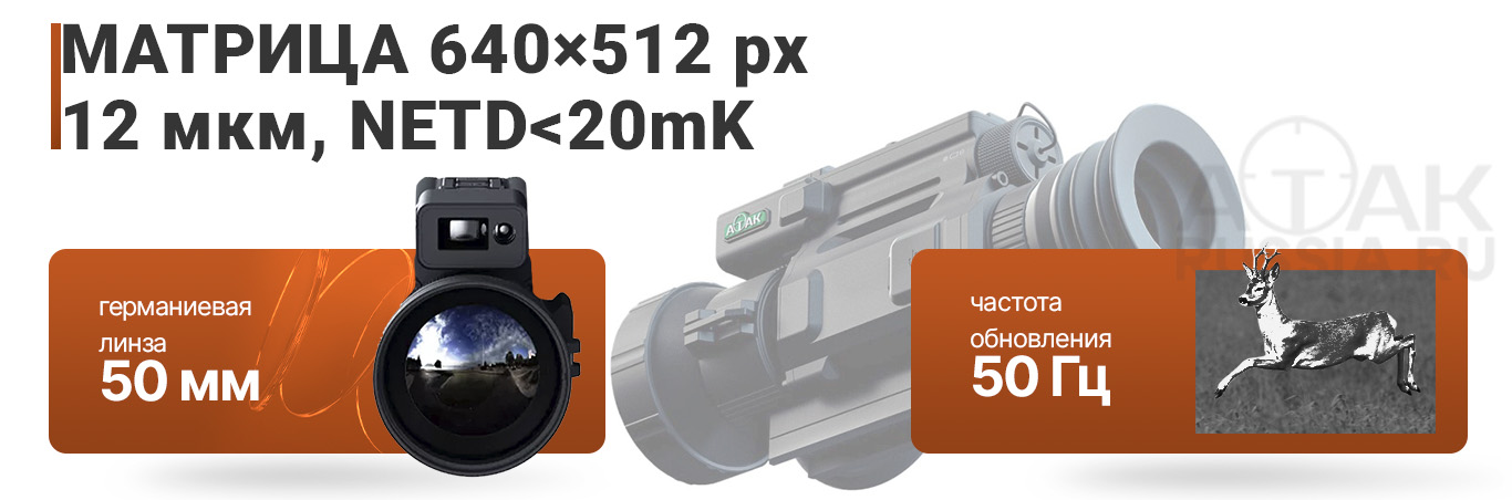Тепловизионный прицел ATAK OT26-50 LRF — это цифровое устройство с высокочувствительной матрицей 640x512px, эффективно обнаруживает тепловые объекты на расстоянии до 2600 м. Регистрирует тепловое излучение в диапазоне 8-14 мкм, подходит для круглосуточной охоты, наблюдений и видеосъёмки в сложных условиях видимости (дождь, туман, густая растительность). Прицел оборудован кронштейном с интерфейсом Picatinny с выносом в сторону стрелка для установки на максимально широкий спектр оружия