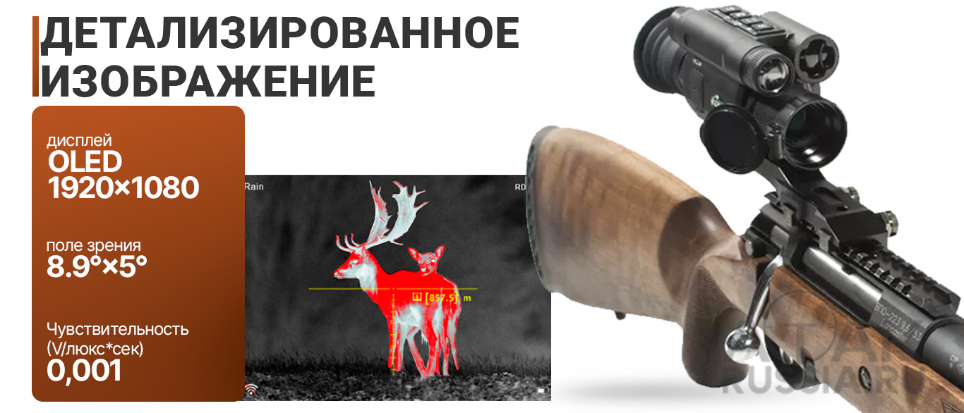 Благодаря цветному OLED-дисплею 1024x768px и передовой программе обработки сигнала АТАК DIPT качество изображения и эффективность работы превосходят устройства с матрицей 1080px, обеспечивая более точное распознавание объектов при слабом освещении и на значительных расстояниях.