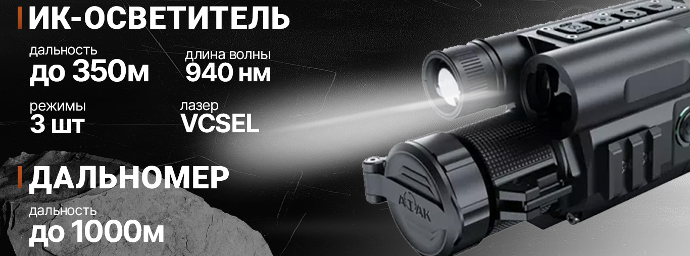 Лазерный дальномер - обеспечивает точное измерение расстояний до 1000 м. Устройство поддерживает как одиночные замеры, так и режим непрерывного сканирования. Инфракрасный лазерный луч остается незаметным для невооруженного глаза и приборов ночного видения.